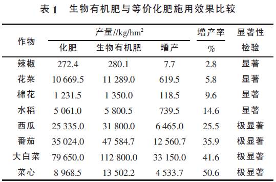 目前,生物有机肥在一些生态示范区、绿色和有机农产品基地应用取得了较好的效果, 这对生物有机肥今后的推广应用起到良好的示范作用。